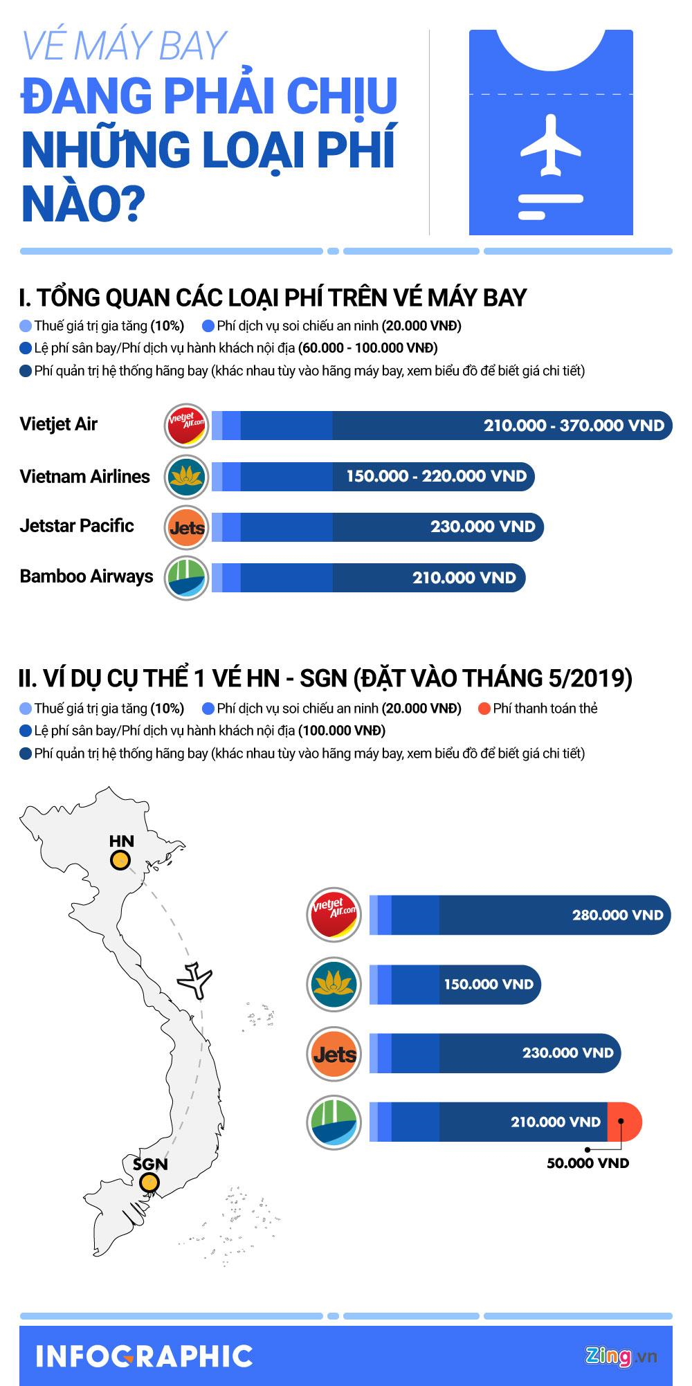 Các loại thuế phí hiện chiếm một phần không nhỏ giá vé máy bay. Trong đó lớn nhất là phí quản trị hệ thống của hãng bay và dịch vụ sân bay.
