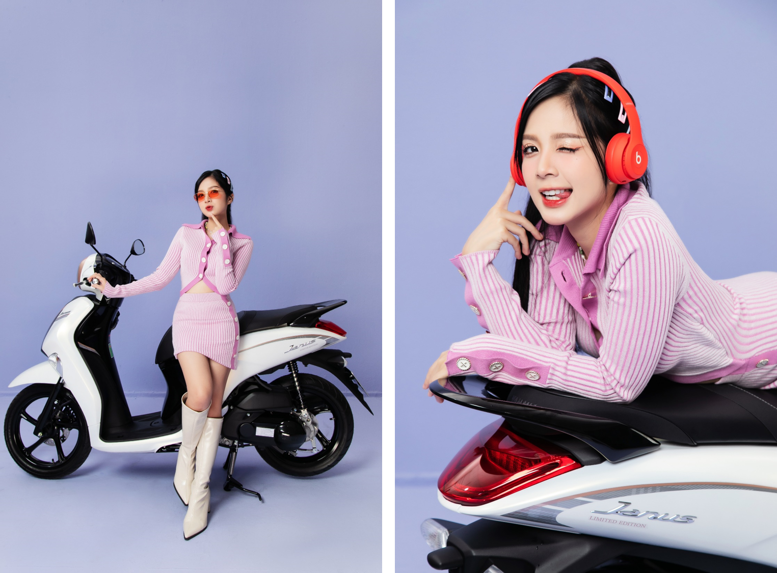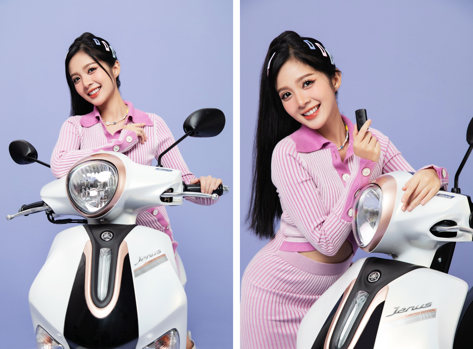 Trong quá trình đi lại ở những buổi quay hình, cư dân mạng thích thú “soi” ra “bạn đồng hành” cô nàng là Yamaha Janus trắng phối màu trẻ trung, tươi mới.