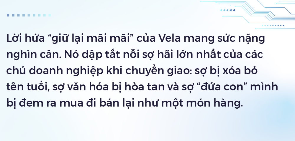 Trong giới tài chính toàn cầu, công thức phổ biến xưa nay vẫn là “Mua rồi bán lại”. Các quỹ đầu tư thường thâu tóm một công ty, rồi bán đi sau vài năm sau để sinh lời theo đúng vòng đời của các quỹ. Nhưng Vela đã tạo ra một định nghĩa mới đầy nhân văn: “Mua và giữ lại mãi mãi”