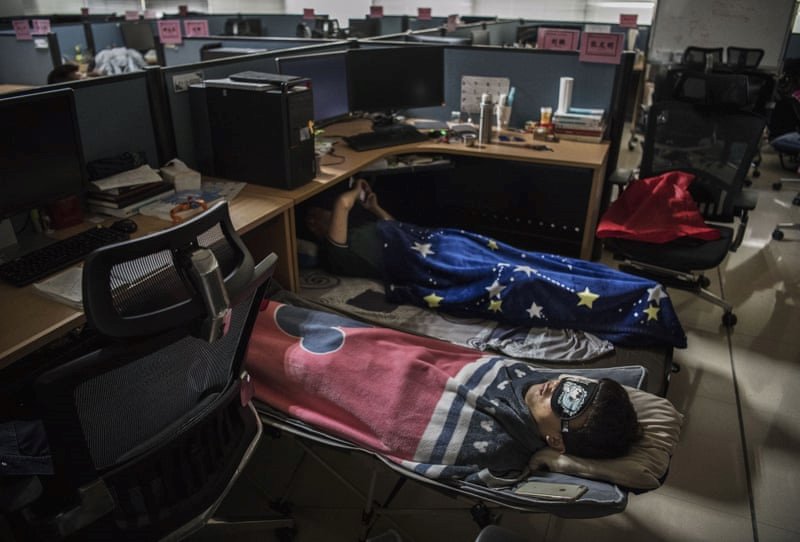 Các nhân viên R&D chợp mắt sau giờ ăn trưa |