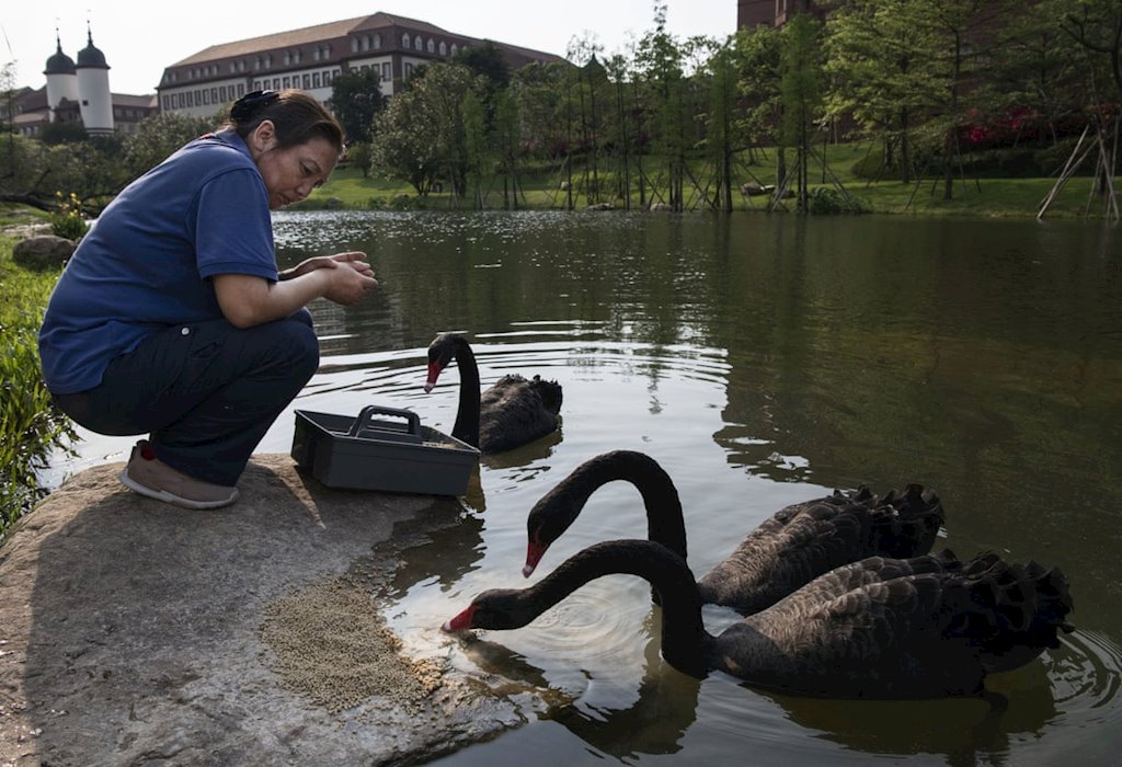 Cho thiên nga đen ăn |