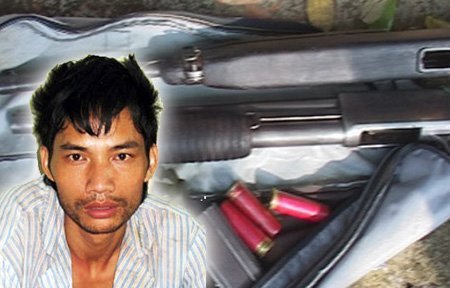 | Vũ Ngọc Sơn cùng số súng đạn dùng để bắn trả cảnh sát |