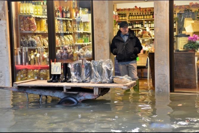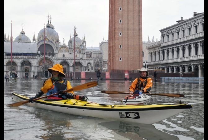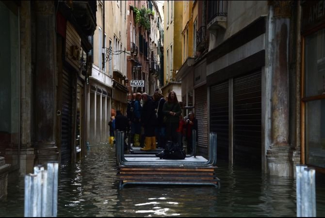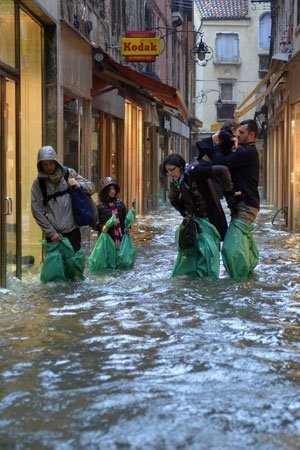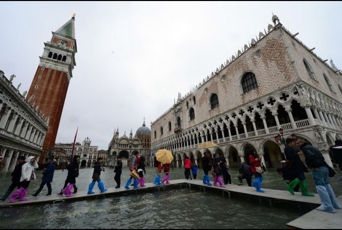 Những trận mưa lớn đã khiến cả khu vực Venice hoa lệ chìm trong nước lụt. Các điểm du lịch như những quảng trường lớn phải lắp những cầu gỗ tạm để mọi người di chuyển.