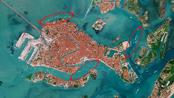 Theo ESA, bức ảnh cho thấy sự thay đổi về mật độ tàu thuyền di chuyển qua những con kênh của thành phố này. Được biết, Venice vốn rất nổi tiếng với hệ thống kênh đầy lãng mạn và thơ mộng, gần như mọi thời điểm trong năm đều rất đông đúc tàu thuyền qua lại. Nhưng từ khi thi hành lệnh phong tỏa vào ngày 8/3, cả thành phố trở nên vắng lặng.