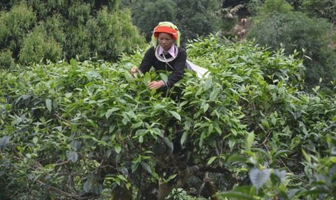 | Cảnh hái chè tại Cao Bồ. Ảnh: Đặng Hữu Cự |