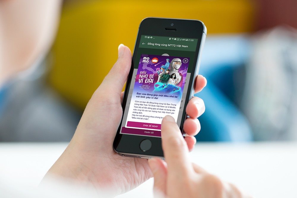 Ví điện tử MoMo phối hợp cùng Uỷ ban Trung ương Mặt trận Tổ quốc Việt Nam, Trường Đại học Y Hà Nội triển khai chương trình “Điều nhỏ bé vĩ đại”. Chương trình nhằm ủng hộ và động viên cho lực lượng tinh nhuệ tiên phong trong cuộc chiến chống Covid-19 vững tâm vượt qua đại dịch.