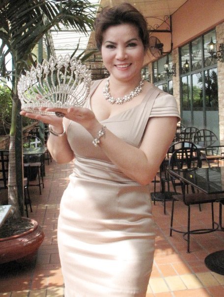T.S Kim Hồng và chiếc vương miện do Chủ tịch Mrs World trao tặng