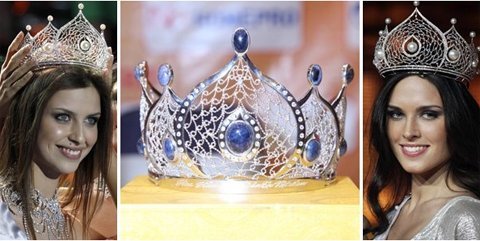 Chiếc vương miện của công ty Gia Gia (giữa) và chiếc vương miện của Hoa hậu Nga được cho là có nhiều nét giống nhau.
