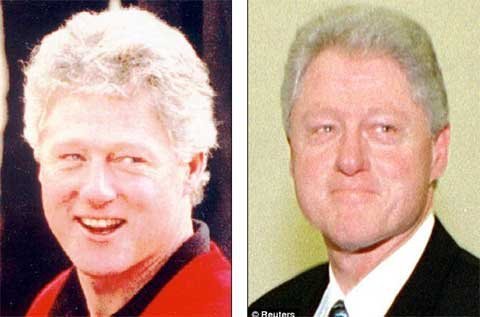 Bill Clinton làm Tổng thống từ 1993 tới 2001: Sau khi nhậm chức, tóc của Bill bạc đi nhiều, thêm nhiều bọng mắt xuất hiện.
