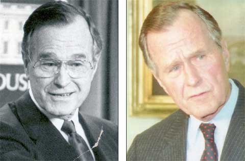 George Bush 1989 - 1993: Chỉ sau một nhiệm kỳ, ông Bush đầy lạc quan nhìn đã tiều tụy hơn và cằm xị ra.