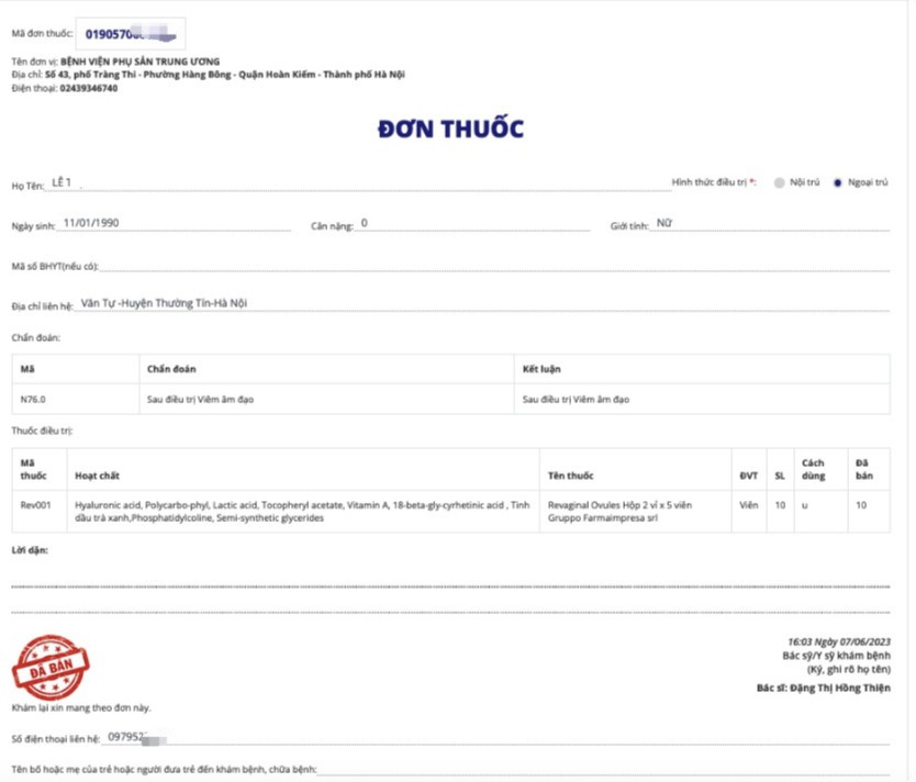 Một đơn thuốc trên hệ thống Đơn thuốc Quốc gia. Ảnh: Võ Thu