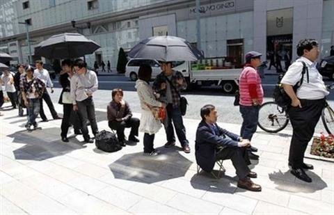 | Hình ảnh người Nhật đội nắng chờ mua hàng công nghệ của Apple không phải là chuyện hiếm gặp. |