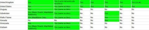 Một điều đáng chú ý nữa là tại bảng thống kê các dịch vụ của Google Maps tại mỗi quốc gia (Link), hầu hết các dịch vụ tại Việt Nam đều có trạng thái là No (không được hỗ trợ) và Việt Nam cùng với 56 quốc gia khác không được hỗ trợ dịch vụ dẫn đường, mặc dù từ trước đến giờ vẫn sử dụng bình thường trong nước mà không gặp khó khăn gì.