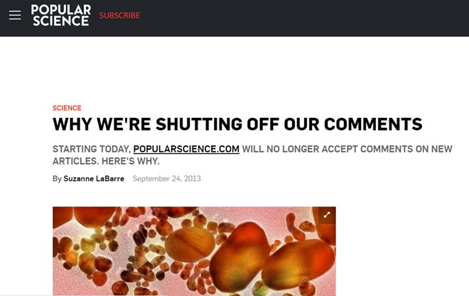 Popular Science giải thích lý do đóng phần bình luận của độc giả trên ấn bản điện tử của tạp chí. (Nguồn: PopScience)