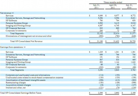 Báo cáo tài chính quý 3 năm 2011 của HP.