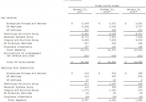 Báo cáo tài chính quý 1 năm 2007 của HP.