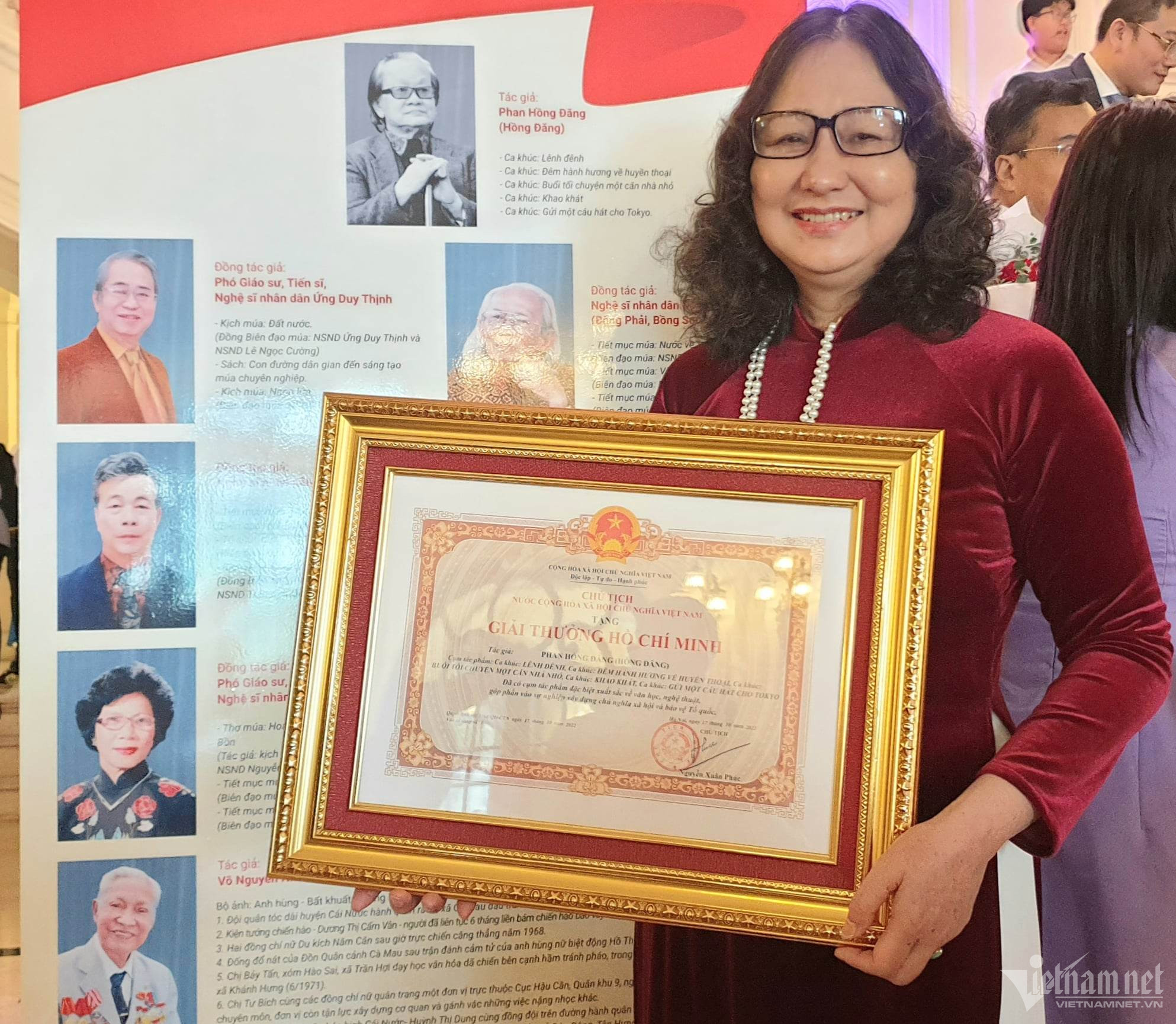 Vợ cố nhạc sĩ Hồng Đăng nhận Giải thưởng Hồ Chí Minh thay chồng.