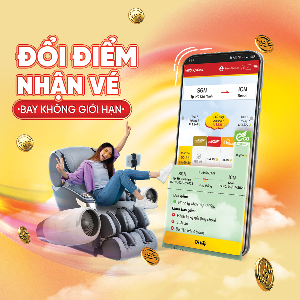 Không giới hạn chuyến bay, khách hàng có thể đổi điểm thành các vé máy bay tới các địa điểm du lịch siêu hot như Bangkok, Singapore, Seoul, TP.HCM, Hà Nội, Đà Nẵng, Nha Trang…