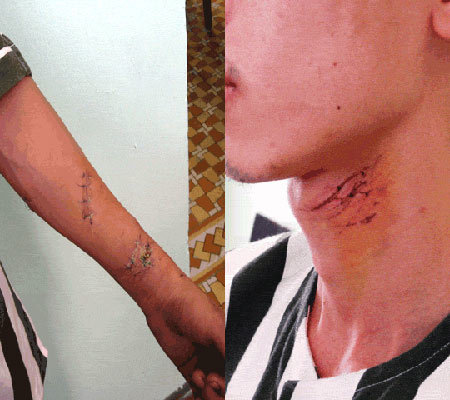 | Những vết tích mà Nguyễn Đình Cao cắt vào tay, cổ của mình để tự vẫn nhưng không thành. |