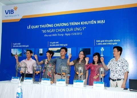 Theo đó, từ 21/5 đến 8/8/2012, khách hàng gửi tiết kiệm lũy tiến tại VIB với số tiền gửi tối thiểu là 10 triệu đồng và kỳ hạn gửi tối thiểu là 1 tháng sẽ được nhận ngay thẻ cào trúng thưởng 100% với trị giá giải thưởng cao nhất lên đến 10.000.000 đồng.