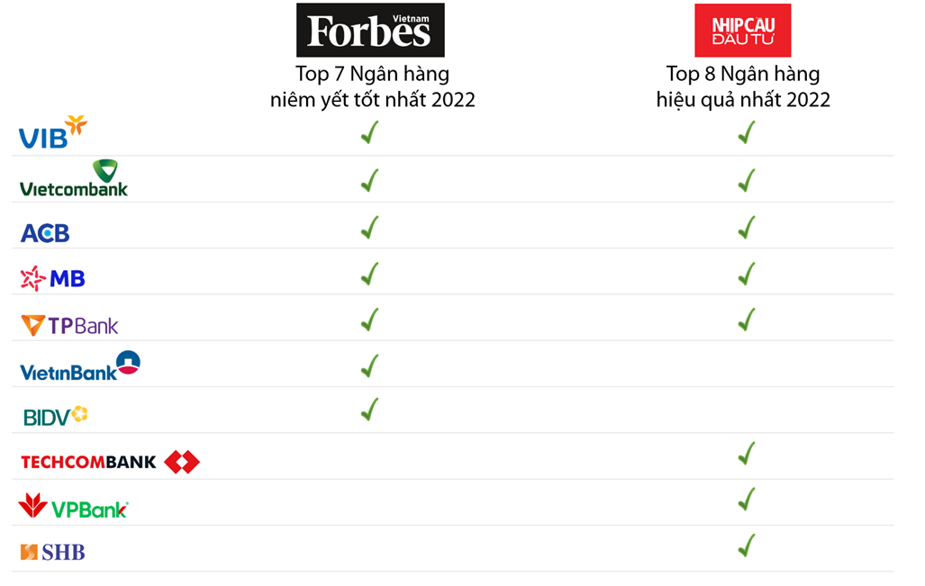 Năm 2022 cũng là năm VIB tiếp tục được vinh danh trong Top 7 ngân hàng niêm yết tốt nhất Việt Nam do Forbes bình chọn, cùng với Vietcombank, ACB, MBB, Vietinbank, BIDV và TPBank. Danh sách xếp hạng mà Forbes đưa ra bao gồm những công ty niêm yết trên thị trường chứng khoán có kết quả kinh doanh vượt trội trong ngành, có vị thế chủ đạo trên thị trường và đem lại lợi nhuận tối ưu cho nhà đầu tư. Ngoài việc tiên phong về chất lượng, tập trung phát triển vào các sản phẩm cốt lõi mang lại nguồn lợi nhuận bền vững, các nhà băng này luôn duy trì đà tăng trưởng bền vững trong nhiều năm qua.