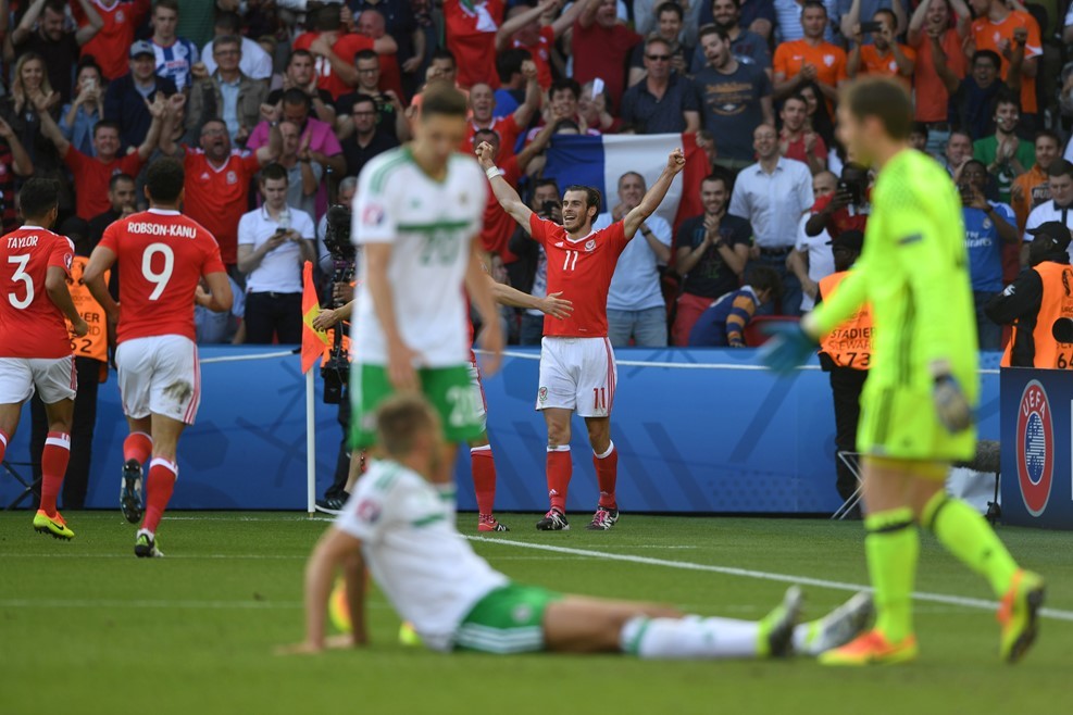 Hạ Bắc Ailen, Xứ Wales làm nên kỳ tích Trong thế trận chặt chẽ, Xứ Wales may mắn hơn khi tìm được bàn thắng "vàng" nhờ cú đá phản lưới nhà của McAuley, để lần đầu tiên góp mặt ở vòng tứ kết Euro. |