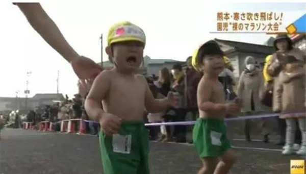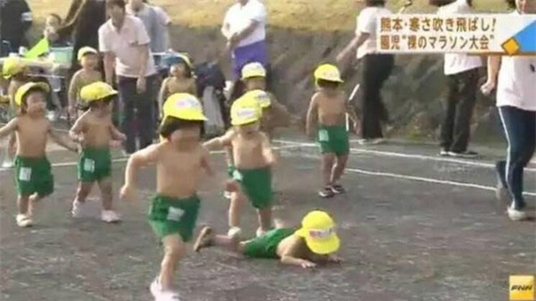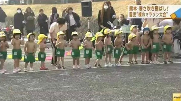 Mới đây, đài truyền hình Fuji của Nhật Bản đã phát sóng một đoạn video ghi lại cảnh trẻ em mẫu giáo ở Nhật chạy thi giữa tiết trời mùa đông lạnh giá. Điều đáng nói là dù nhiệt độ khi đó chỉ có 4 độ C, nhưng các em nhỏ lại chỉ mặc mỗi quần đùi và để trần thân trên.