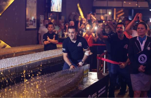 Các nhân viên tại một khách sạn ở Dubai đã phá vỡ kỷ lục thế giới với màn trình diễn khiến gần 4.600 ly rượu đổ liên tiếp.