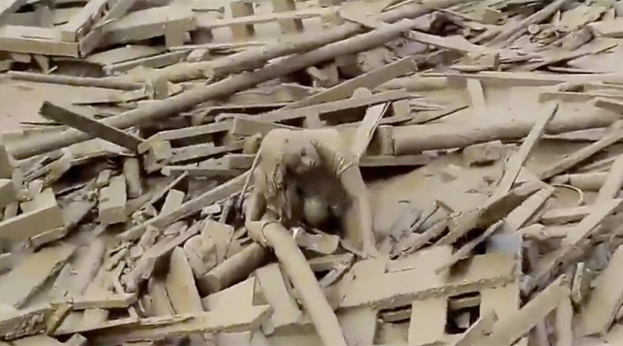 Người lấm bùn đất, ngụp trong đống đổ nát, người phụ nữ Peru cố thoát khỏi trận lở đất kinh hoàng.