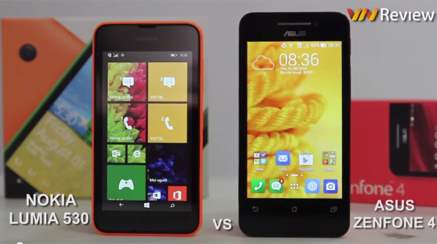 Asus và Nokia hiện đang đua tranh với nhau rất gay gắt ở phân khúc giá rẻ của thị trường smartphone. Ở từng mức giá 2, 3 và 4 triệu đồng, hai hãng này đều có những sản phẩm đối trọng nhau. Gần đây, chúng tôi đã có bài so sánh hai sản phẩm tầm giá 3 triệu đồng của hai hãng này là Nokia X2 và Asus Zenfone 4 A450 (phiên bản 4.5 inch). Hôm nay VnReview tiếp tục gửi tới bạn đọc bài so sánh ở tầm giá 2 triệu đồng giữa Nokia Lumia 530 và Asus Zenfone 4 (phiên bản có pin 1600 mAh). Asus cho biết các máy Asus Zenfone 4 hiện bán ra thị trường Việt Nam đều là phiên bản có pin 1600 mAh, tăng 400 mAh so với phiên bản trước đây.