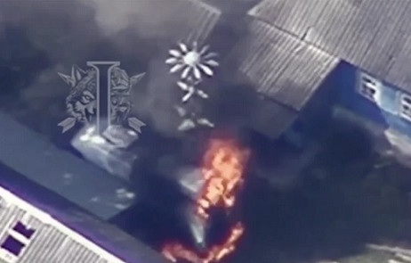 Trang quân sự Mil.in.ua đã đăng đoạn video ghi cảnh trực thăng vũ trang Mi-24 Ukraine dùng súng máy đa nòng YakB bắn hạ máy bay không người lái (UAV) Nga.