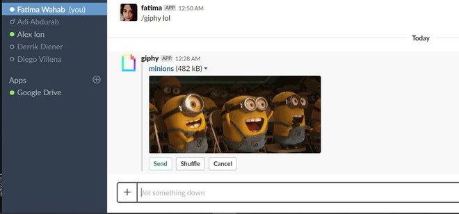 Slack cung cấp lựa chọn hỗ trợ ảnh GIF, mà bạn có thể cài đặt thêm vào không gian làm việc của mình. Phó Chủ tịch và tổng giám đốc Brian Elliott cho biết: “Slack cam kết bảo vệ dữ liệu của người dùng và doanh nghiệp. Giphy không được chia sẻ bất kỳ thông tin nào về người dùng, ngay cả việc ai đang sử dụng tiện ích tích hợp của Giphy”. Do đó, Giphy vẫn sẽ được tích hợp trong Slack.