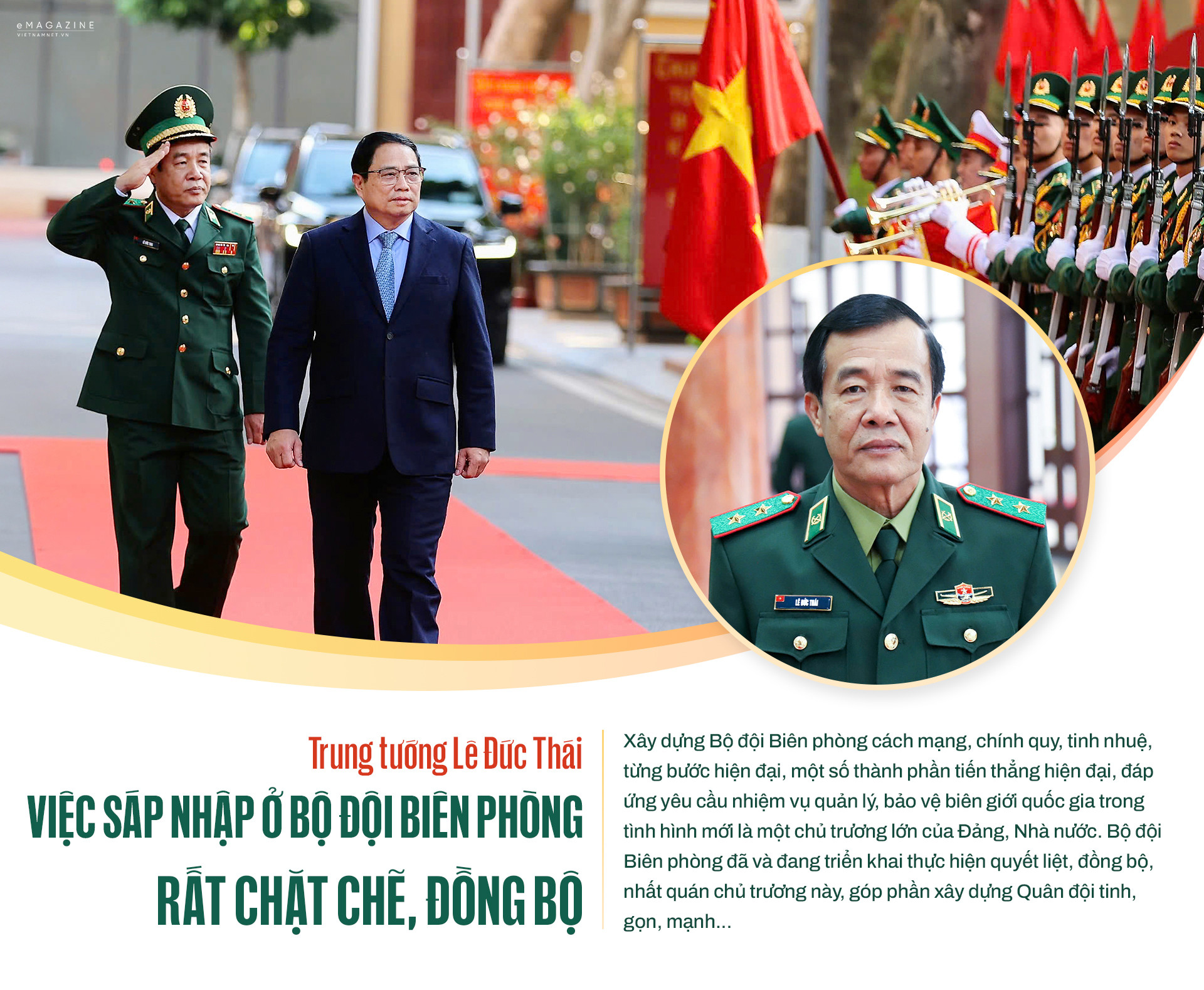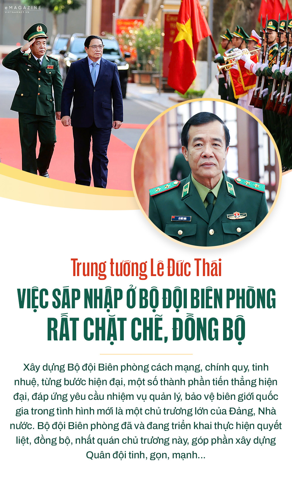 Trung tướng Lê Đức Thái: Trước bối cảnh đất nước hội nhập quốc tế ngày càng sâu rộng, tình hình thế giới, khu vực đang diễn biến phức tạp, khó lường và tình hình thực tiễn khu vực biên giới đã đặt ra nhiều khó khăn, thách thức. Để tiếp tục xây dựng BĐBP cách mạng, chính quy, tinh nhuệ, từng bước hiện đại, một số thành phần tiến thẳng lên hiện đại, lực lượng BĐBP đã và đang tập trung thực hiện một số nội dung cơ bản.