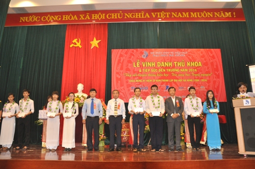 Phát biểu tại buổi lễ, thầy Trần Văn Nam, Giám đốc Đại học Đà Nẵng cho biết: “8 tân sinh viên là Thủ khoa và Á khoa của Đại học Đà Nẵng đã vinh dự nhận phần thưởng trị giá 5 triệu đồng/sinh viên, cùng 1 máy tính bảng. Các tân sinh viên nghèo, vượt khó đạt thành tích cao trong kỳ thi cũng được nhận học bổng tiếp sức đến trường; mỗi suất trị giá 3 triệu đồng”.