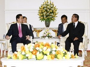 Trao đổi về quan hệ hai nước, Thủ tướng Nguyễn Tấn Dũng và Thủ tướng Campuchia Hun Sen đánh giá cao việc hai nước đã tích cực tổ chức nhiều hoạt động có ý nghĩa chào mừng Năm Hữu nghị Việt Nam - Campuchia và kỷ niệm 45 năm quan hệ ngoại giao hai nước.