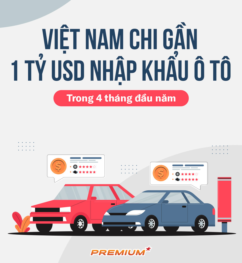 Hết tháng 4, Việt Nam đã chi gần 1 tỷ USD nhập khẩu ô tô nguyên chiếc các loại, giảm 23,5% so với năm 2023.