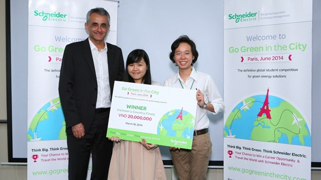 Schneider Electric, chuyên gia toàn cầu về quản lý năng lượng, đã tổ chức vòng thi chung kết toàn cầu của cuộc thi về ý tưởng kinh doanh “Go Green in the City 2014” (Giải pháp Xanh cho Thành phố 2014), tại Paris, Pháp từ ngày 17 đến 21/6/2014. Tham gia vòng thi chung kết có 24 thí sinh xuất sắc nhất đến từ khắp các châu lục. Vòng chung kết được tổ chức ngay tại trụ sở chính của tập đoàn Schneider Electric. Kết quả chung cuộc, đội giành ngôi vô địch năm nay là EnerBy gồm 2 sinh viên Jin Deng Keith Chan và Man Ki Lee từ Đại học Khoa học & Công nghệ Hồng Kông, giải Nhì thuộc về đội Glowing Future với các sinh viên Erik Zydervelt và Genna Boyle của Đại học Victoria, Wellington. Đại diện Việt Nam là đội Energy Bank với hai nữ sinh Đặng Huỳnh Mai Anh và Nguyễn Thị Thùy Dương (Đại học Ngoại thương Thành phố Hồ Chí Minh) giành giải Ba.