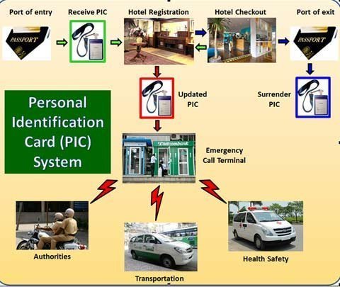 Có thể áp dụng một hệ thống thẻ nhận dạng cá nhân (PIC) tại Việt Nam, cho phép một cá nhân sử dụng tấm thẻ căn cước (ID) đã mã hóa để đăng ký thuê khách sạn và sử dụng ở mọi nơi trong quốc gia này để tìm hỗ trợ trong trường hợp khẩn cấp. Các máy rút tiền tự động ATM phải có khả năng đọc một tấm thẻ như thế và ngay lập tức cung cấp hỗ trợ tại chỗ cho người đó. Thông qua một hệ thống gọi điện tự động, cá nhân có thể dễ dàng gọi một dịch vụ taxi đáng tin cậy. Tại Sài Gòn, có những dịch vụ rất đáng tin cậy do các hãng Mai Linh và Vinasun cung cấp. Hệ thống cáp của taxi có thể tích hợp với một máy đọc thẻ cho phép cá nhân gặp nguy hiểm truyền thông tin lên hệ thống PIC để người điều hành cáp nhận được và trợ giúp.
