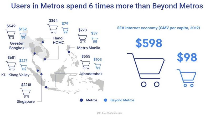 Tính đến thời điểm hiện tại, 7 khu vực đô thị đang chiếm hơn một nửa tỷ trọng nền kinh tế Internet của Đông Nam Á trong khi chỉ chiếm 15% dân số. Từ giờ đến năm 2025, nền kinh tế Internet đang có đủ điều kiện để tăng nhanh gấp đôi ở các khu vực bên ngoài các đô thị lớn so với tại các đô thị. Điều này sẽ giúp tạo thêm việc làm và cơ hội mới, tăng nhu cầu đầu tư để mở rộng truy cập Internet ở các khu vực ít được chú trọng hơn và đưa toàn bộ dân số Đông Nam Á vào nền kinh tế số.
