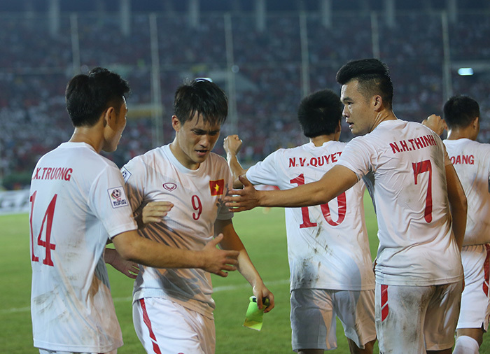 | Văn Quyết ghi bàn thắng đầu tiên cho ĐTVN ở AFF Cup 2016. Ảnh: SN |