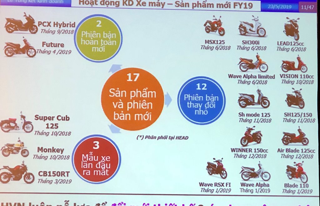 Theo thông tin Tổng Giám đốc Honda Việt Nam công bố, trên toàn cầu, doanh số bán xe máy của Honda đạt 20,2 triệu chiếc, tăng trưởng 3,5%. Mức tăng trưởng này được đánh giá là nhờ sự tăng trưởng của các thị trường châu Á như Indonesia và Việt Nam. Hiện, thị trường hiện Việt Nam đang đóng góp 12,6% doanh số bán xe máy cho Honda trên toàn cầu.