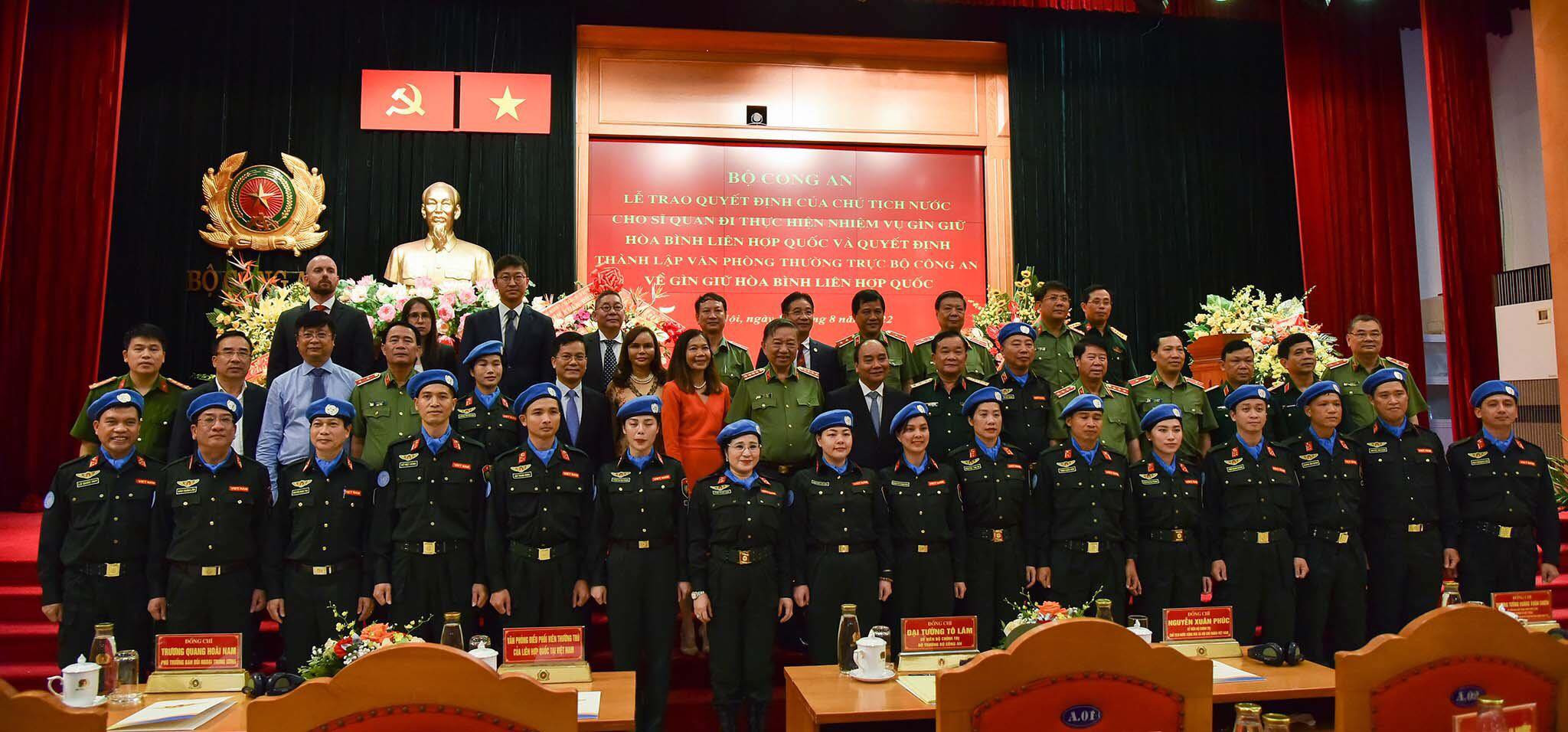 Trao quyết định và chúc mừng các sĩ quan công an nhận nhiệm vụ, Chủ tịch nước Nguyễn Xuân Phúc cho biết, Việt Nam đã thúc đẩy triển khai lực lượng tham gia hoạt động gìn giữ hòa bình Liên Hợp Quốc và đạt được những kết quả rất tích cực, đóng góp hiệu quả vào việc duy trì hòa bình, ổn định trên thế giới, giải quyết các thách thức an ninh của nhân loại.