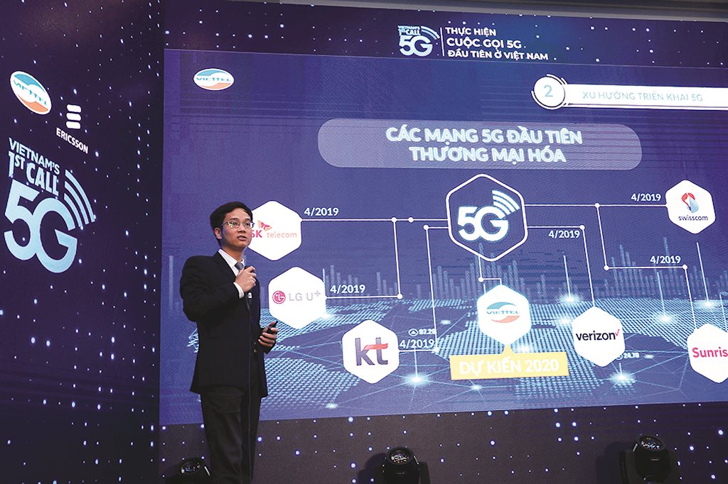 Nếu nhìn lại quá khứ, Việt Nam triển khai 3G và 4G đều chậm hơn so với thế giới từ 8 - 10 năm. Thậm chí với 4G, Việt Nam là nước sau chót trên thế giới triển khai công nghệ này. Thế nhưng, với 5G, Bộ trưởng Bộ TT&TT Nguyễn Mạnh Hùng tuyên bố Việt Nam sẽ nằm trong Top đầu và đi cùng thế giới về cung cấp dịch vụ và cả sản xuất thiết bị viễn thông 5G. “Việt Nam sẽ thương mại 5G chính thức vào năm 2020 bằng thiết bị của Việt Nam. Hiện nay, thế giới chưa có chuẩn và tần số chính thức cho 5G. Dự kiến năm 2020, tiêu chuẩn cho 5G sẽ được ban hành. Việt Nam đi sau các nước khi triển khai 2G, 3G, 4G nhưng sẽ đi cùng với thế giới về 5G. Trong 131 nhà mạng đang triển khai 5G, thì Việt Nam có 3 nhà mạng đang triển khai thử nghiệm”, Bộ trưởng Nguyễn Mạnh Hùng khẳng định.