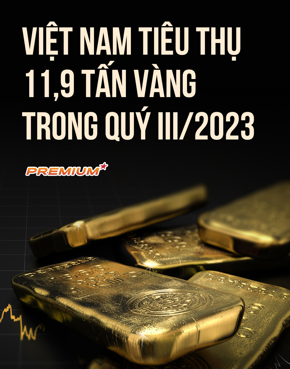 Quý III/2023, tại Việt Nam, nhu cầu tiêu dùng vàng giảm 1% so với cùng kỳ năm ngoái xuống còn 11,9 tấn.