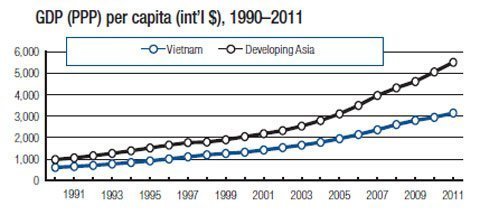 Biểu đồ GDP bình quân đầu người Việt Nam giai đoạn 1999-2011.