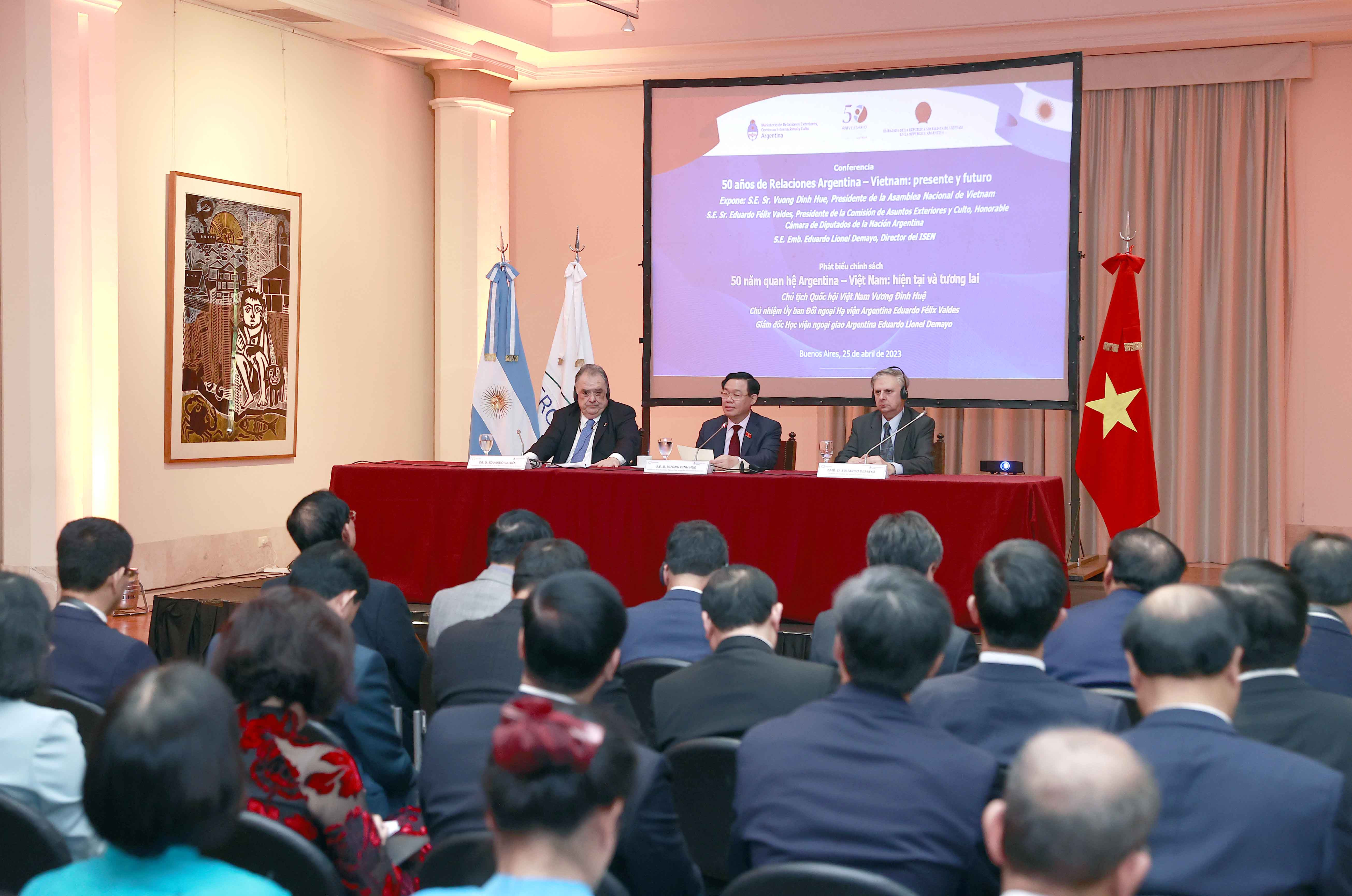 Ngày 25/4 (giờ địa phương), tại trụ sở Bộ Ngoại giao, Ngoại thương và Tôn giáo Argentina, Chủ tịch Quốc hội Vương Đình Huệ dự sự kiện kỷ niệm “50 năm quan hệ Việt Nam-Argentina: Hiện tại và tương lai”. Trân trọng giới thiệu toàn văn bài phát biểu của Chủ tịch Quốc hội: