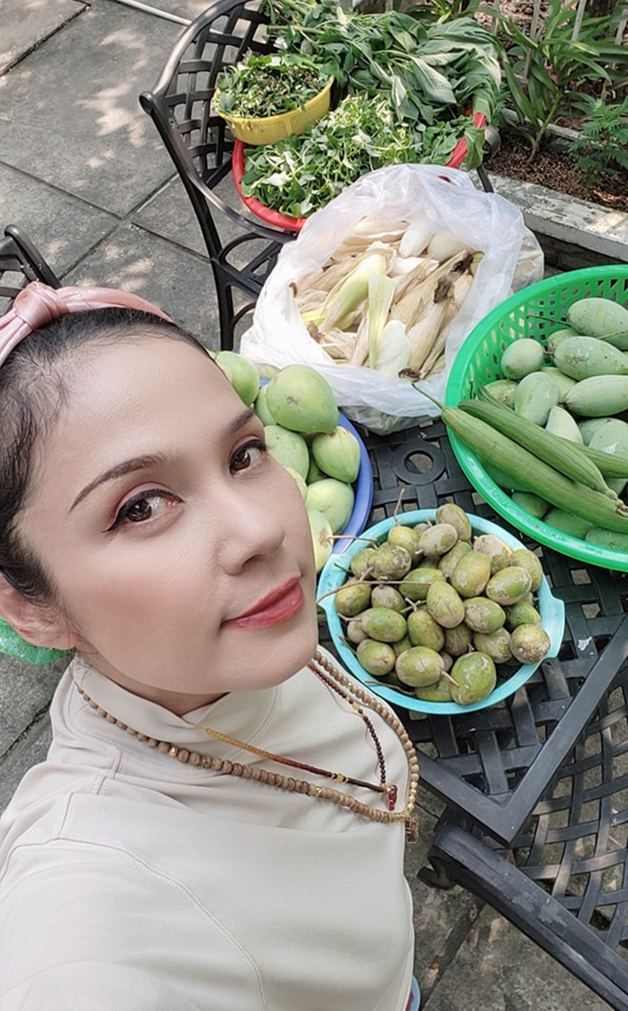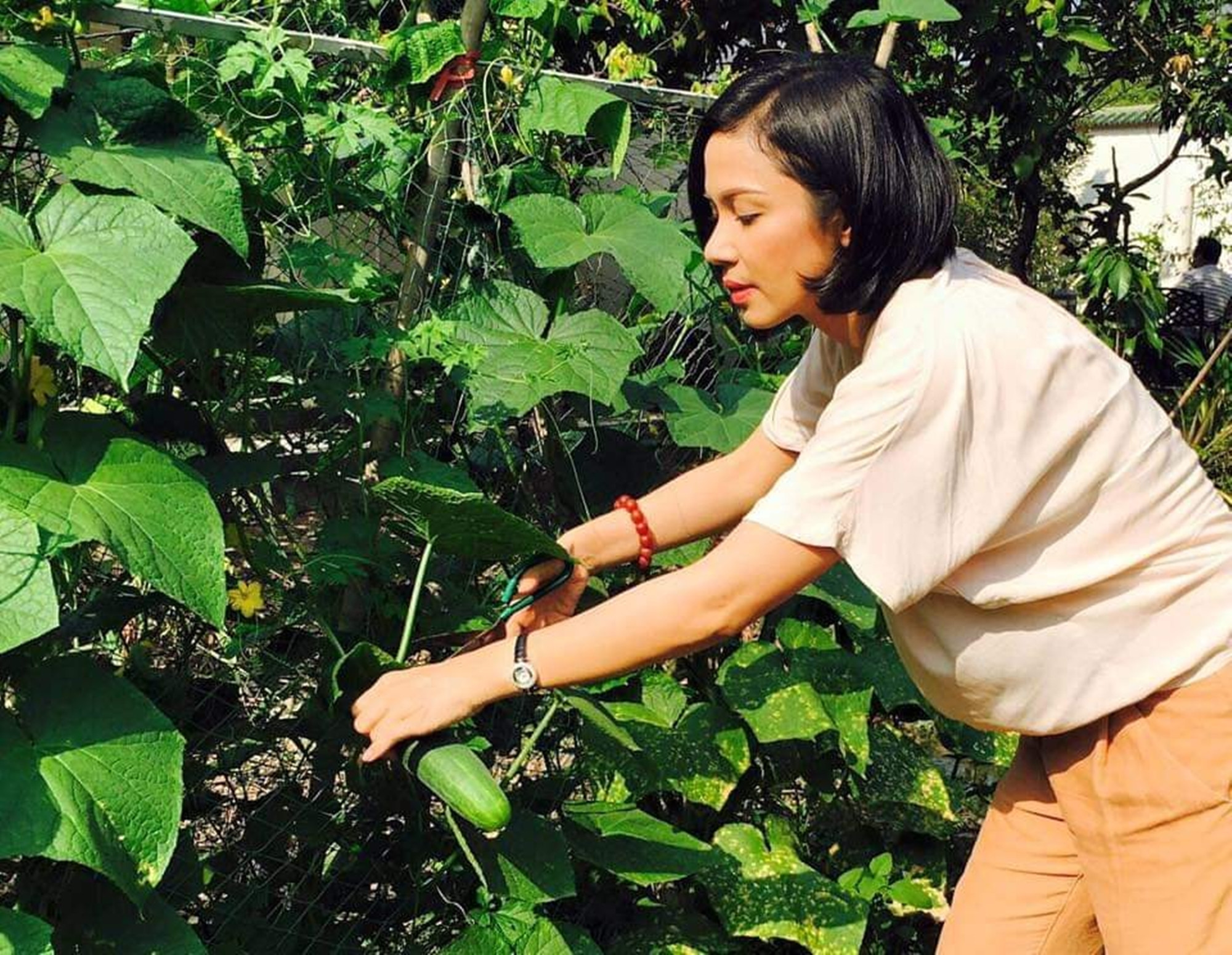 Việt Trinh sở hữu căn nhà vườn rộng 2.500m2 tại Bình Dương, trồng rất nhiều rau quả, cây ăn trái.