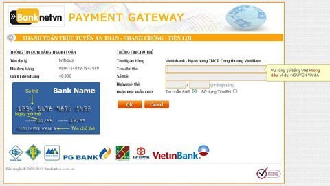 Thao tác thực hiện thanh toán qua Cổng thanh toán trực tuyến Banknetvn hết sức đơn giản. Sau khi truy cập vào các website bán hàng, lựa chọn hàng hóa, màn hình sẽ chuyển sang mục Thanh toán trực tuyến để khách hàng nhập các thông tin cơ bản, bao gồm: Tên chủ tài khoản, số thẻ, ngày phát hành. Sau đó, Banknetvn sẽ gửi các thông tin này tới Vietinbank để xác thực và cấp mật khẩu dùng 1 lần (OTP) tới khách hàng.