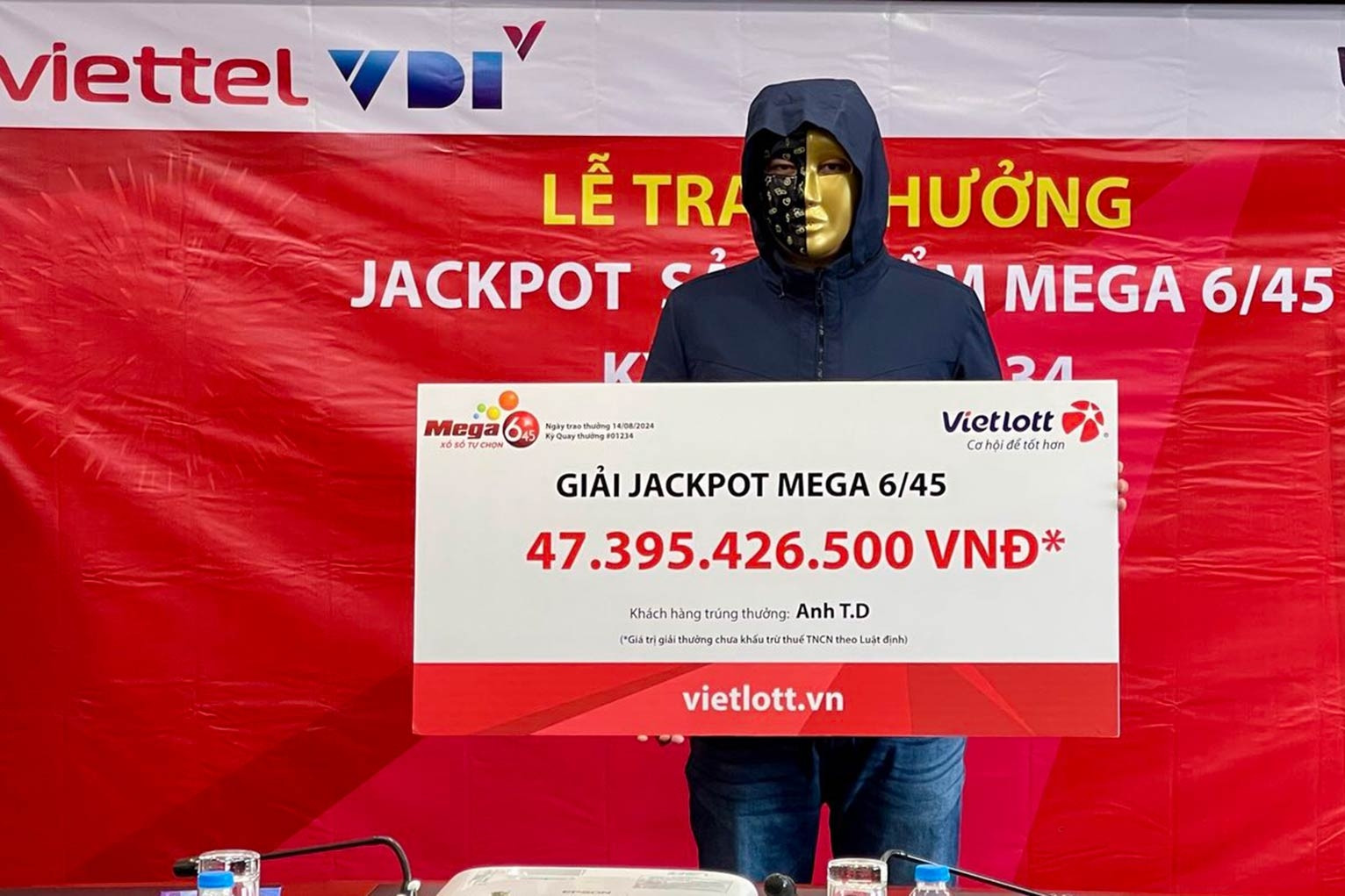 Tới tối 7/8, Hội đồng quay thưởng của Vietlott xác định có 1 vé số trúng giải Jackpot trong kỳ quay số mở thưởng lần thứ 1.234 của sản phẩm Mega 6/45, với trị giá hơn 47 tỷ đồng. Đây là một khách hàng của nhà mạng Viettel.