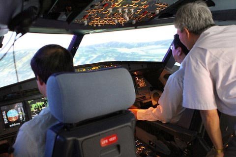 lái mô phỏng máy bay Airbus A320/321 tại Trung tâm huấn luyện bay của VNA tại